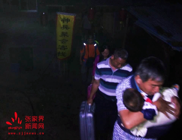 晚上9時許,由天子山景區(qū)管委會干部職工、居委會居民組成的應(yīng)急隊伍冒雨趕到老屋場,對入住游客和當(dāng)?shù)鼐用褚灰贿M行耐心解釋,勸導(dǎo)他們連夜轉(zhuǎn)移到安全地帶。